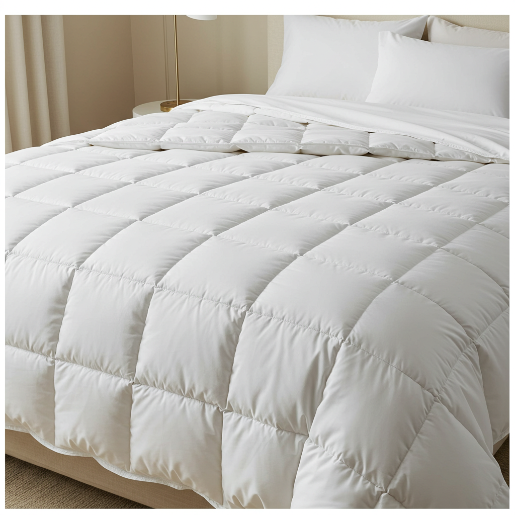 Diese Decke ist inspiriert vom Komfort großer Hotelsuiten – dort, wo jedes Detail zählt. Die Kombination aus natürlicher Eleganz und technischer Raffinesse macht sie zur perfekten Ergänzung unserer Satin- und Perkalbettwäsche.